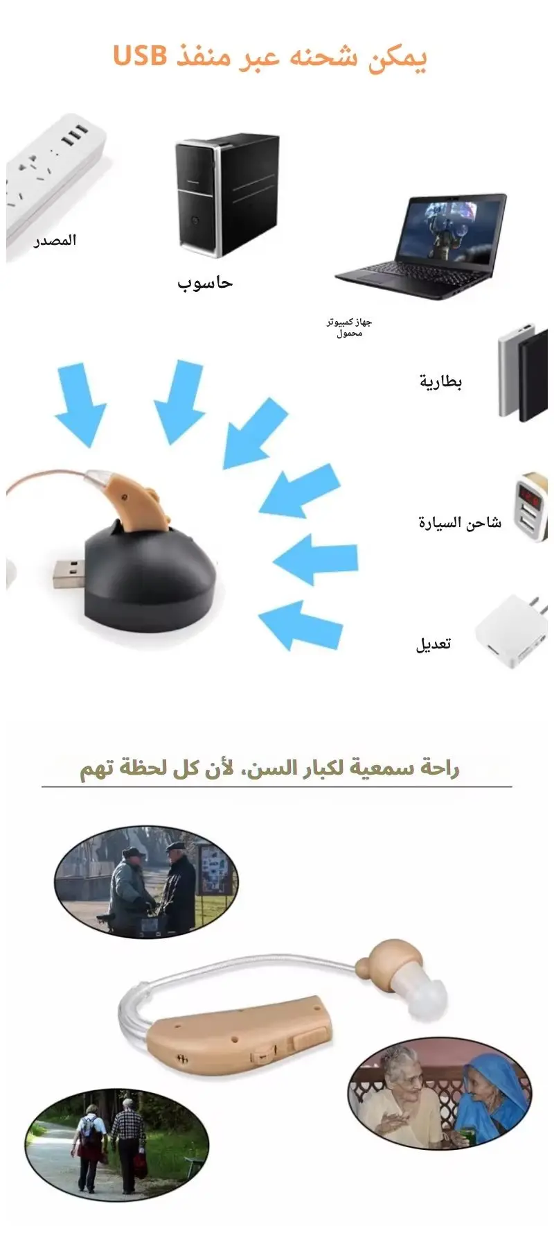 لا تدع البطاريات تعيقك بعد الآن. مع سماعة الأذن الطبية القابلة للشحن، احصل على تجربة سمعية نقية طوال اليوم دون القلق من نفاد الطاقة. مصممة لتوفير الراحة المطلقة لكبار السن، بأداء عالي وتقنية حديثة تدوم طويلاً. فقط اشحنها مرة، واستمتع بيوم مليء بالأصوات التي تستحق أن تُسمع.