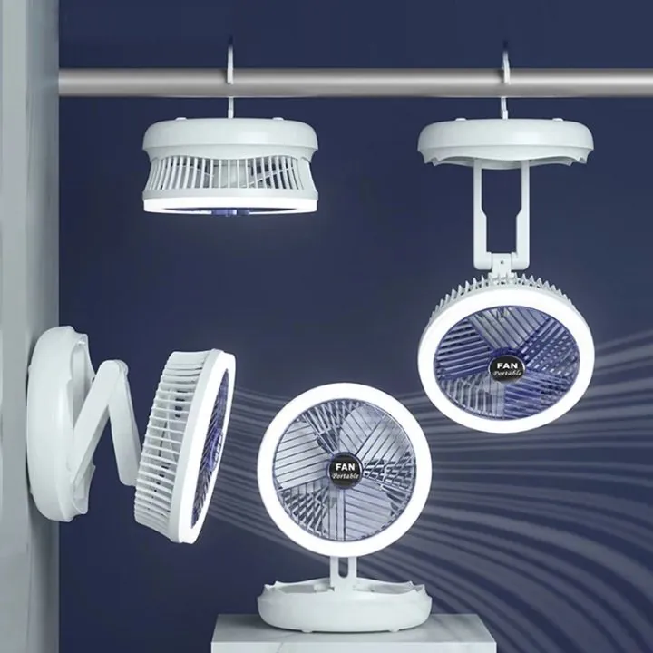 1. إضاءة وتبريد فعالين: يجمع بين مروحة قوية ومصباح LED قابل للتعديل لتوفير إضاءة وتبريد في جهاز واحد.