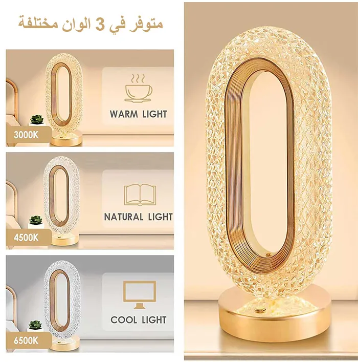 مصباح الطاولة البلوري الرومانسي يضفي لمسة من السحر والأناقة على أي غرفة. تصميمه البلوري المميز يجعل منه قطعة زخرفية رائعة تضيف جواً رومانسياً دافئاً. 💫💎