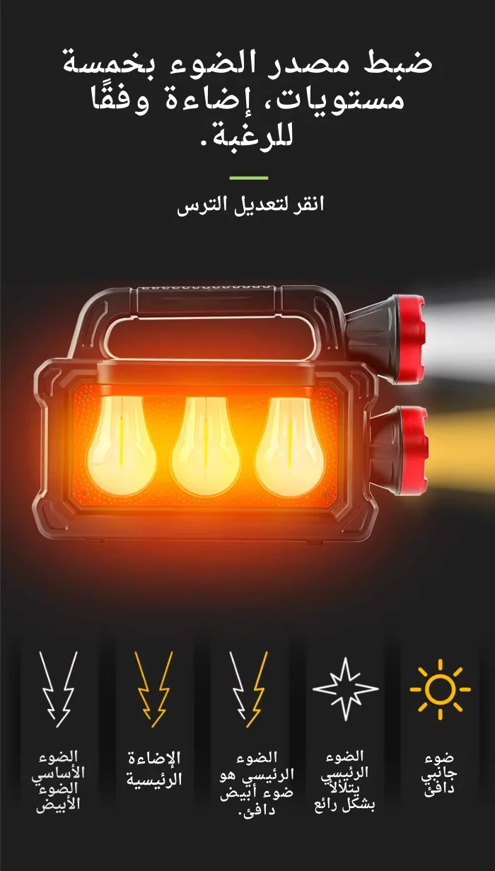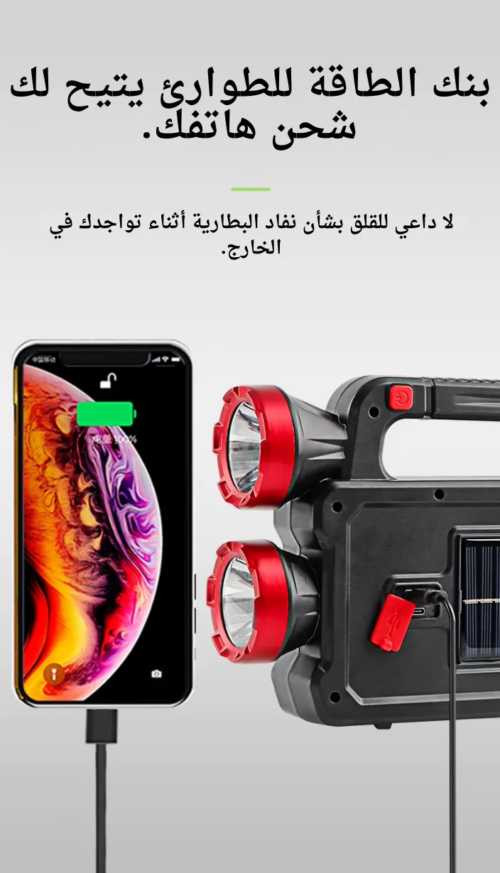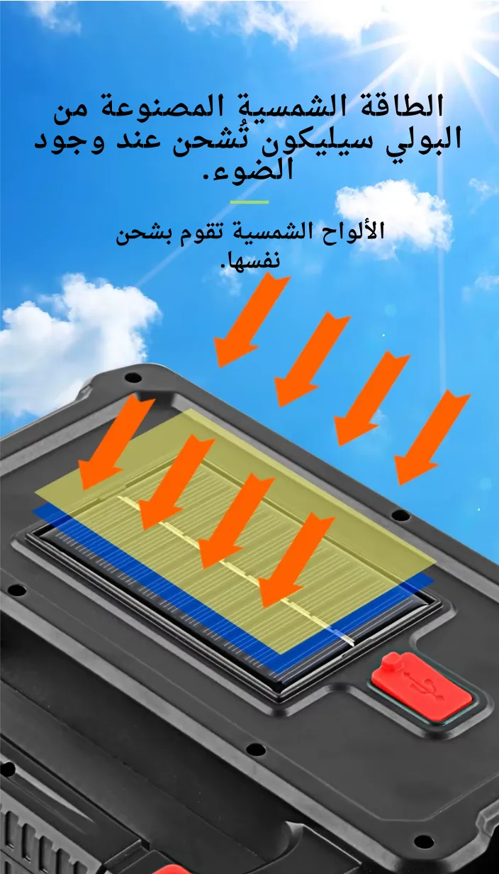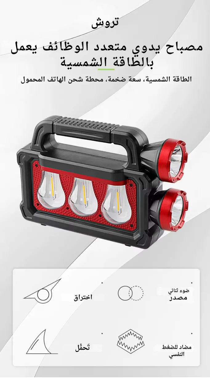 مصباح يدوي متعدد الوضائف يعمل بالطاقة الشمسية