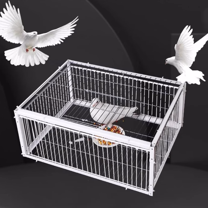 مساحة واسعة للحركة : القفص يوفر مساحة كافية للحمام للتحرك دون ضغط، مما يضمن لهم بيئة مريحة وصحية تساعدهم على النمو والتكاثر بشكل طبيعي